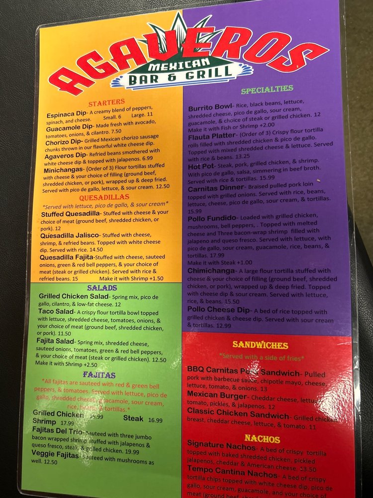 Agaveros Mexican Bar & Grill Menu (Update 2025)